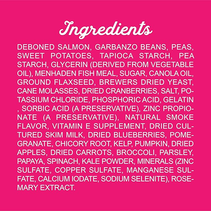 - With real Salmon as the first ingredient for a grain-free treat you can feel good about.