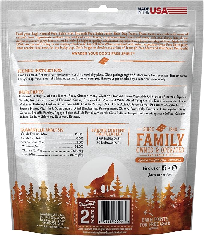 Triumph Free Spirit Grain Free Turkey, Vegetable & Cranberry Recipe Jerky Bites Dog Treats | 24 oz