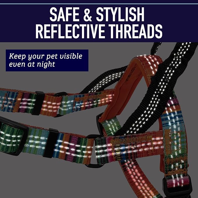 - Reflective bright design for safety and stylish pups: Polyester adjustable dog walking harness has fun patterns and matching quick release buckles. A soft neoprene fabric on the interior ensures a comfortable fit for your pet. Reflective threads ensure extra safety and visibility for nighttime walks. Dog Harness Medium Sized Dog, Large Dog Harness, Medium Dog Harness
