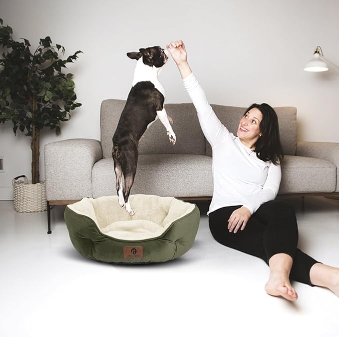 Asvin Medium Dog Bed for Medium Dogs, Cat Beds for Indoor Cats, Pet Bed for Puppy and Kitty, Extra Soft & Machine Washable with Anti-Slip & Water-Resistant Oxford Bottom, Green, 25 inches