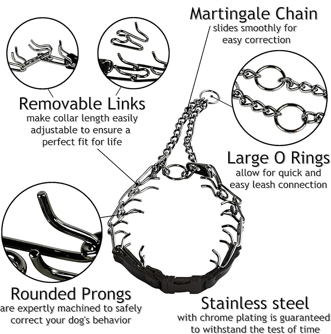 - ๐๐๐๐ ๐๐ง๐ ๐๐ฎ๐ฆ๐๐ง๐ โซธThis Style Collar evenly applies pointed pressure compared to sudden jerk and Impact of chains or relentless pressure of flat collars, which makes getting your dog to obey much safer and easier.