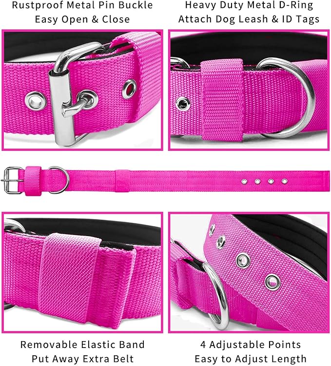 - đžăAdjustable Heavy Duty Pin Buckle & D-ringă- â The Rustproof Metal Pin Buckle has 4 adjustable points, easy to adjust the comfortable fit. ⥠Removable Elastic Band will secure the excess of the end of belt.So your dog can't rip it off.⢠D-ring can be attached your dog leash to keep your dog next to you easier by your control.⣠Heavy Duty Metal Hardware for good durability, Which is more difficult to break down and rust, it's more security for your dog.