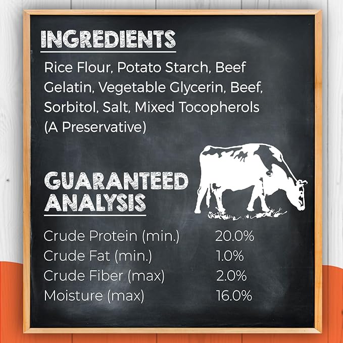 - GLUTEN FREE & MADE WITH REAL BEEF - Our healthy beef chews are gluten-free and safe for your furry friend. Made with care and integrity; our healthy chews contain no artificial flavors, colors, or filler ingredients like corn, wheat, or soy. Canine Naturals ingredients are chosen because they're digestible, healthy, and have a flavor dogs love!