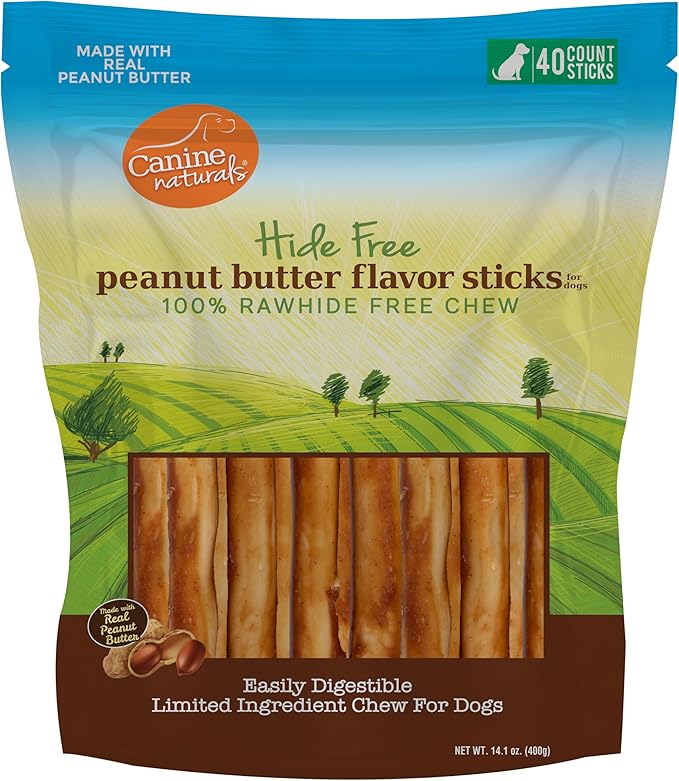 Canine Naturals Peanut Butter Chew - Rawhide Free and Dog Treats - Made from Real Peanut Butter - All-Natural and Easily Digestible - 40 Pack of 5 Inch Stick Chews