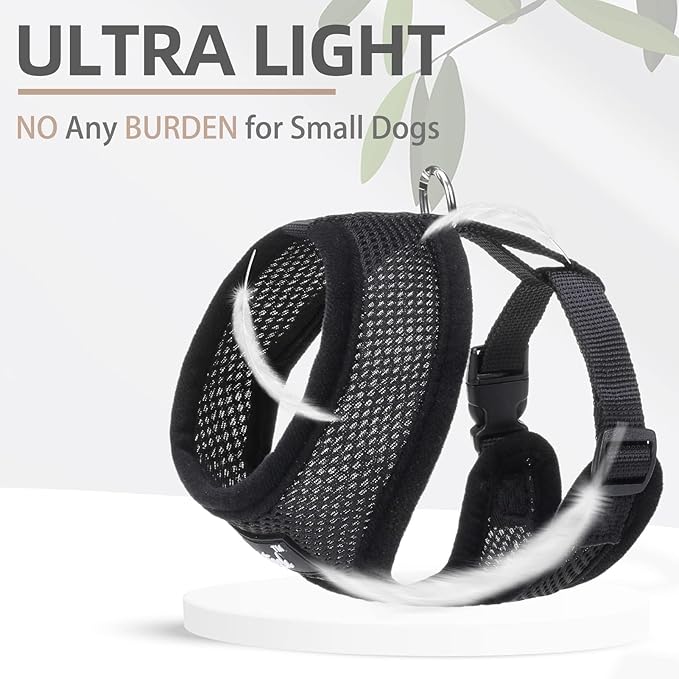 PUPTECK Soft Mesh Dog Harness and Leash Set Pet Puppy Cat Comfort Padded Vest No Pull Harnesses, Solid Black, S
