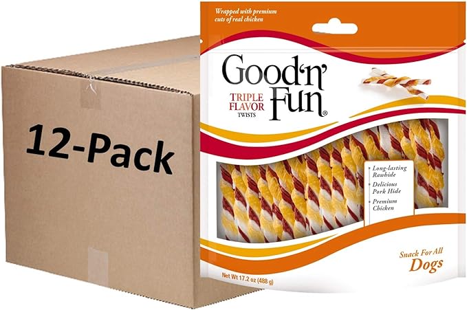 - LONG-LASTING: Good ‘n’ Fun Triple Flavor Twists are truly delightful, long-lasting rawhide treats your dog will love.