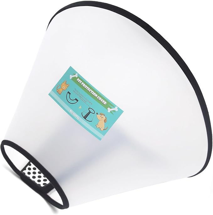 - 【LIGHTWEIGHT & COMFORTABLE】- Lightweight and extra soft fabric edges allow your dog to wear it comfortably with less stress on her neck. In addition, its transparent plastic will not block your pet’s vision, they can lie down, sleep, even eat and drink normally
