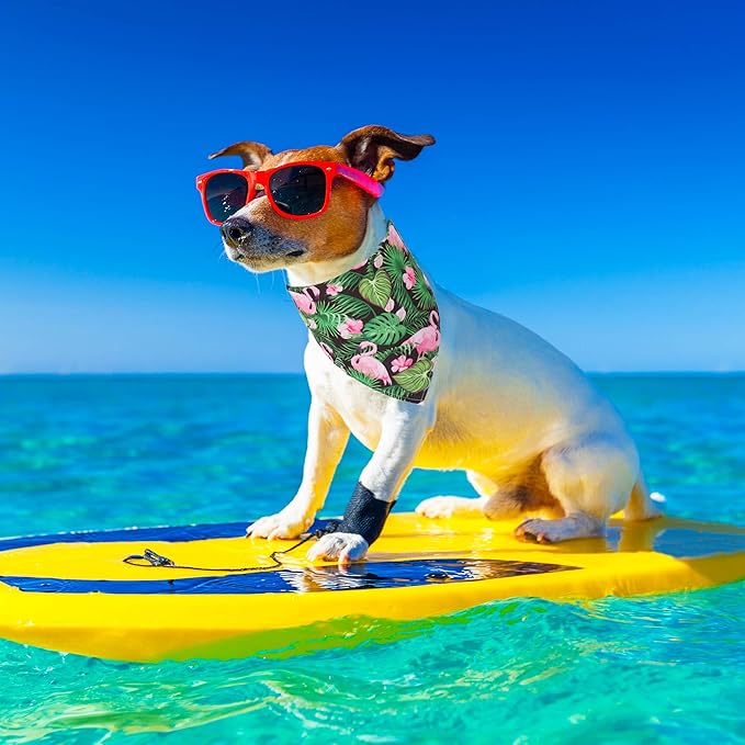 - Summer Hawaii Dog Bandana: Designed with summer flamingo & fruit & leaves pattern, perfect for summer, enough for daily wear and replacement.