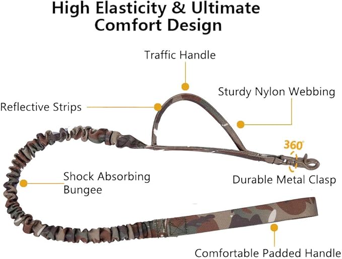 - 【Free High-Quality Bungee Dog Leash】The shock-absorbing bungee leash has a built-in elastic rubber band and can extend to 49 inches to give sufficient elasticity and control, reducing risk of injury. The two padded handles give your wrist a cushion against the pull. Heavy duty metal hook, made of sturdy zinc alloy, is for attaching the leashes. 【More Products in the Shop: We offer Custom patches, Pouches and more Patches】