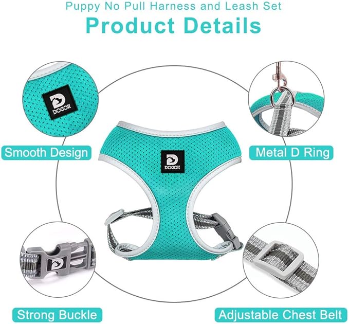 Dog Harness and Leash Set- Adjustable Reflective Step in Harness for Small Dogs Medium Size Dogs- No Pull No Choke Soft Mesh Comfort Dog Vest Harness (M, Lake Blue)