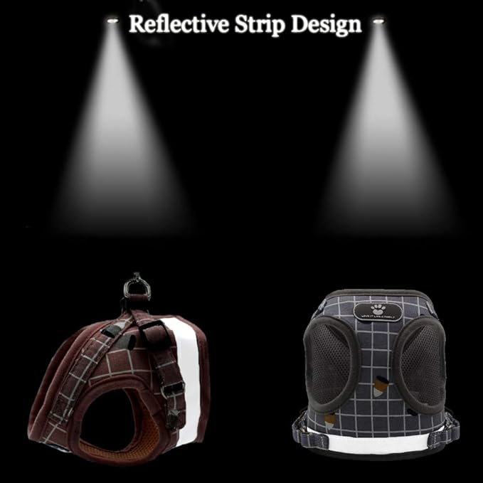 - Reflective: The high reflective strap of the plaid harness can improve visibility at night and low light conditions, You don't have to worry about the cat's night travel.