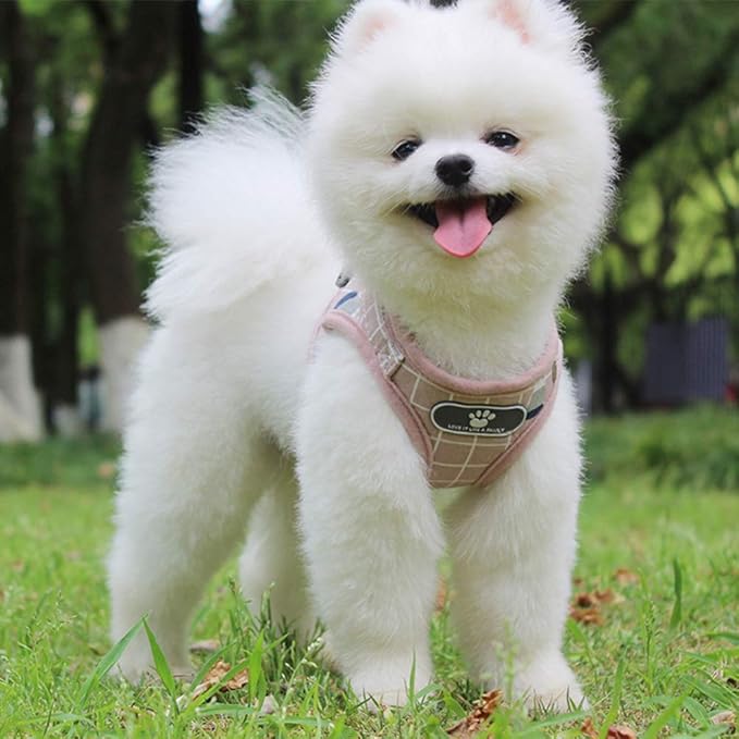 FEimaX Soft Mesh Dog Harness and Leash Set for Walking, No Pull Adjustable Reflective Puppy Step-in Vest Harness for Puppy Small Medium Dogs & Cats (L (Chest 16.1-18.1''/41-46CM), Plaid Pink)