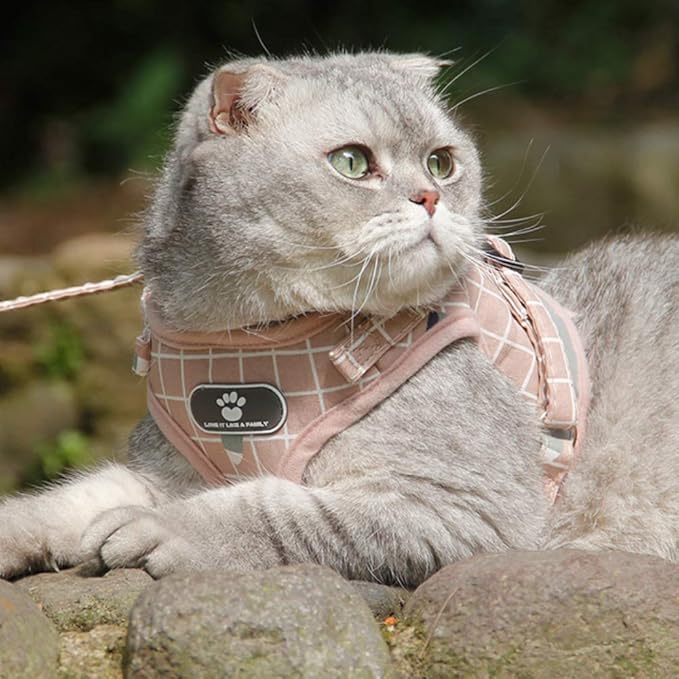 - Reflective: The high reflective strap of the plaid harness can improve visibility at night and low light conditions, You don't have to worry about the cat's night travel.