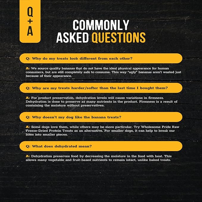 - Wholesome Pride Banana Bites are 2-ingredient dog treats made with just bananas and coconut oil for a deliciously natural option your dog will love