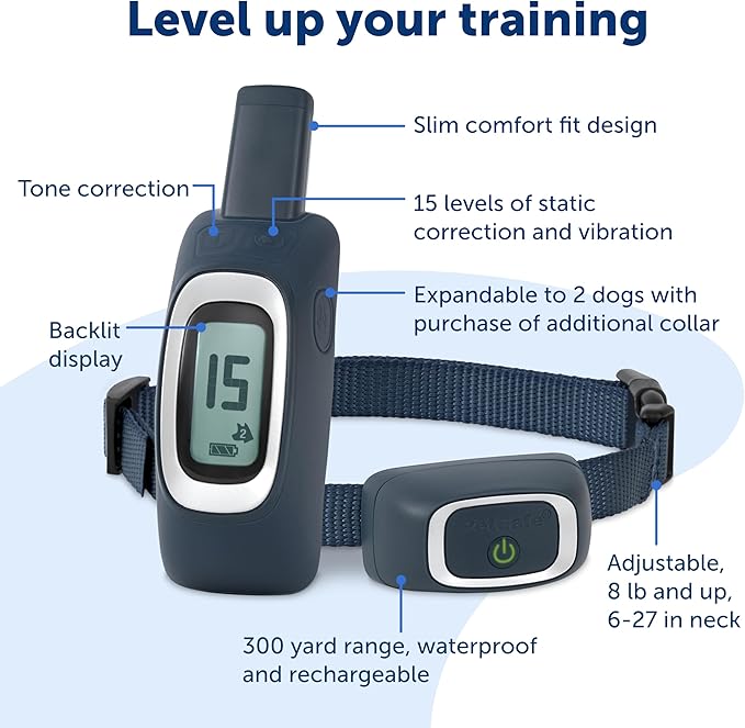 - 3 TYPES OF CORRECTION: Uses 3 types of stimulation: audible tone, vibration and 15 levels of static (includes a safety lock feature for higher levels)