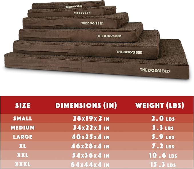 The Dog’s Bed Orthopedic Memory Foam Dog Bed, Large Brown Plush 40x25, Pain Relief for Arthritis, Hip & Elbow Dysplasia, Post Surgery, Lameness, Supportive, Calming, Waterproof Washable Cover