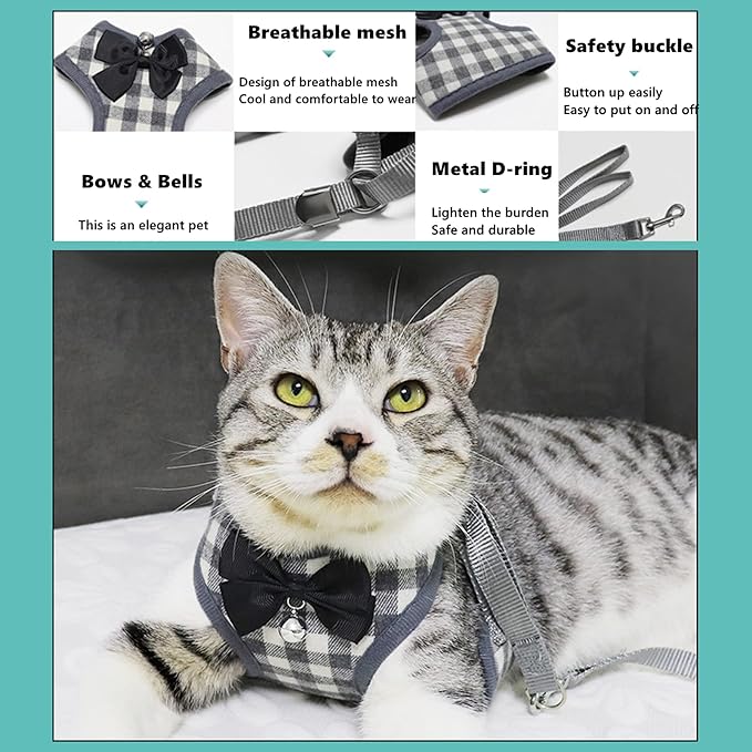 Cat Harness, Dog Harness and Leash Set, Bunny Rabbit Ferret Harness with Adjustable Buckle Comfort for Pet Kitten Small Animals Harnesses