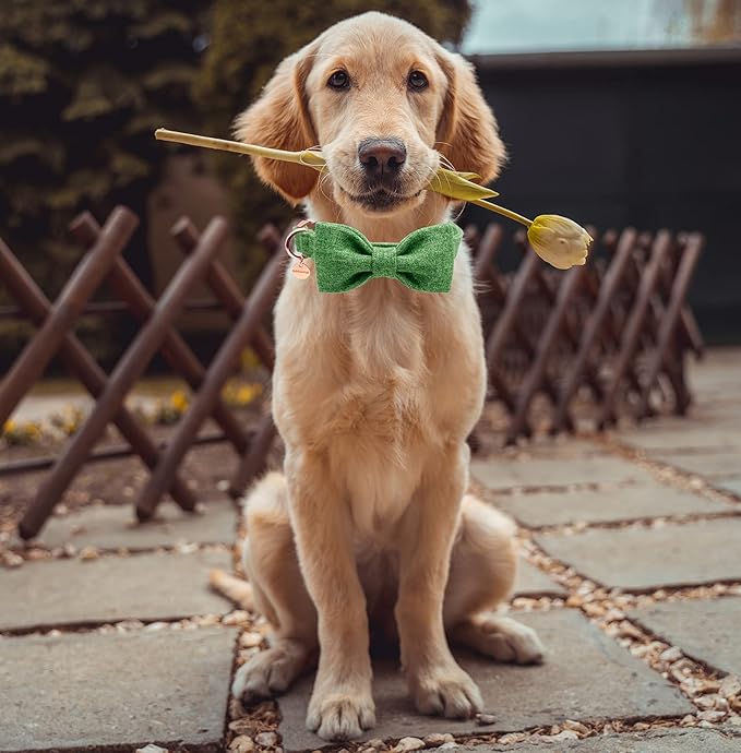 - [QUALITY] High-quality quick release metal buckle,equipped with a D-Ring for quick and easy leash attachment.The bow tie is removable, attached to dog collar with two elastic strap.Hand-made, twice quality inspections, to ensure the durability of the product.