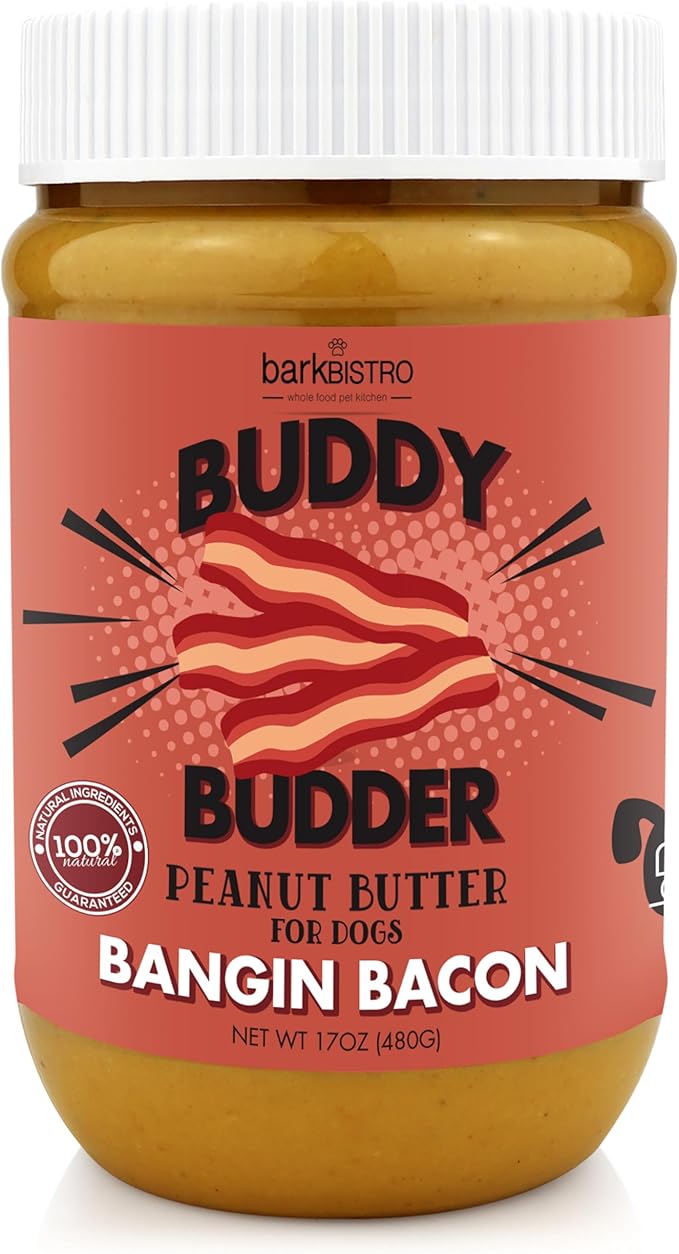 BUDDY BUDDER Bangin Bacon Peanut Butter, 100% Natural, 17oz, Dog Treat, Pill Pocket, Made in USA