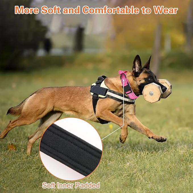 KCUCOP Tactical Dog Collar for Medium & Large Dogs - Military Nylon Heavy Duty Collar with Handle, Reflective Strip & Metal Buckle for Training, Outdoor (Pink Reflective, Large)