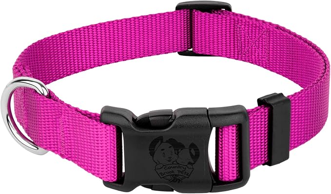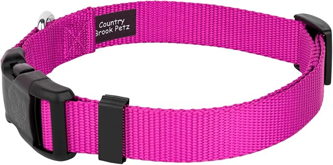 Country Brook Petz - American-Made Dog Collar for Large, Medium, and Small Dogs and Puppies - Deluxe Heavy Duty Nylon in 33 Dazzling Colors (Medium, 3/4 Inch Wide, Fuchsia)