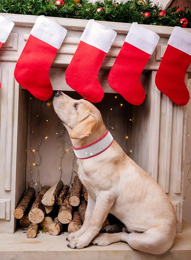 Bling Rhinestone Dog Collar Soft Comfortable Stylish Dog Collar with Bright Reflective Stripe Premium Adjustable Diamond Crystal Pet Collar for Small Medium and Large Dogs (M, Red)