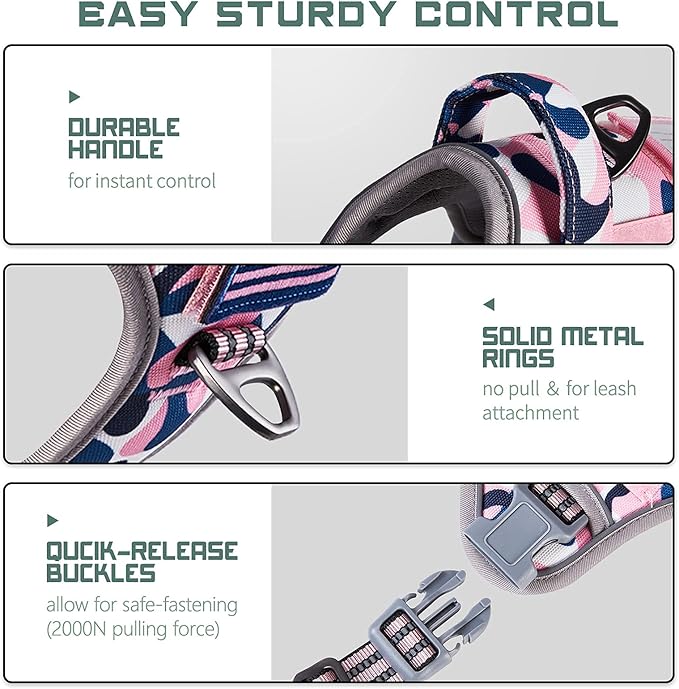 BUMBIN Tactical Dog Harness for Medium Dogs No Pull, Famous TIK Tok No Pull Dog Harness, Fit Smart Reflective Pet Walking Harness for Training, Adjustable Dog Vest Harness with Handle Pink Camo M