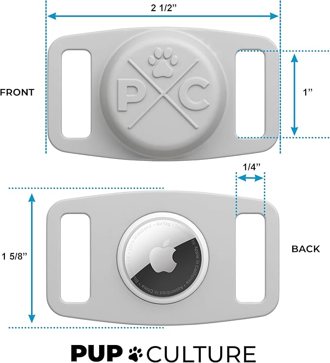 - PUP SECURE AND IPHONE FRIENDLY. Tired of hounding your dog when he runs for the hills? Just clip your Apple AirTag to the Pup Culture AirTag Dog Collar Holder for 24/7 dog tracking, straight from your iPhone. The non-dangling case loops through the dog collar, so you don’t have to sweat your AirTag flying off your furry friend.