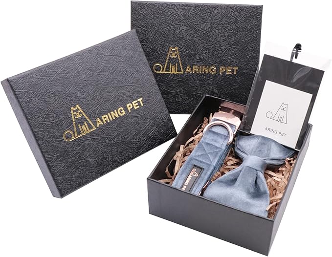 ARING PET Bowtie Dog Collar,Velvet Dog Collars with Detachable Bowtie, Cute &Comfortable Dog Collar, Blue Medium.