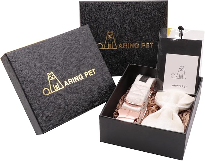 ARING PET Bowtie Dog Collar-Velvet Dog Collars with Detachable Bowtie, White Wedding Soft Dog Collar,X-Large.