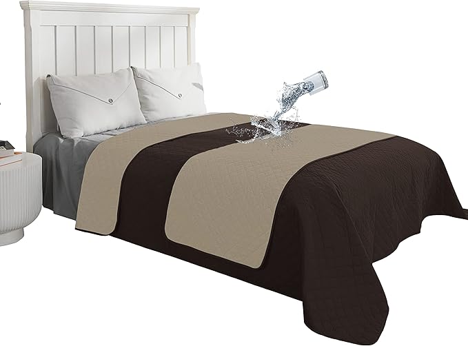 Easy-Going 100% Waterproof Dog Bed Cover Reversible Leak Proof Couch Cover Washable Sofa Cover Furniture Protector Blanket for Pets Kids Children Dog Cat (102x90 Inch, Chocolate/Beige)