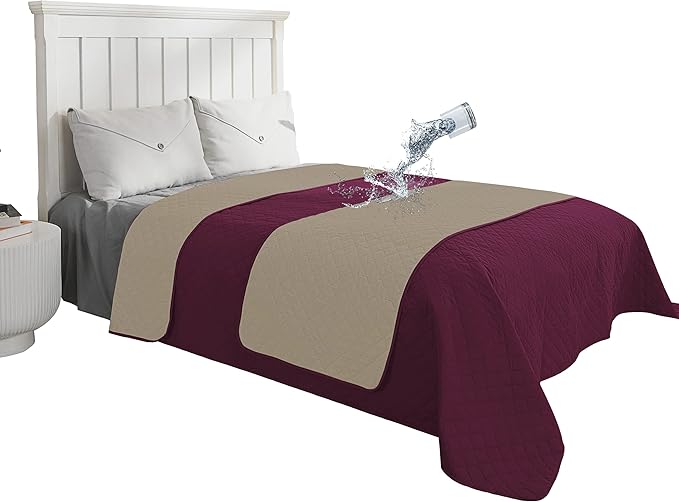 Easy-Going 100% Waterproof Dog Bed Cover Reversible Leak Proof Couch Cover Washable Sofa Cover Furniture Protector Blanket for Pets Kids Children Dog Cat (96x90 Inch, Wine/Beige)