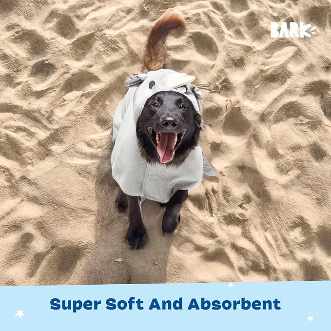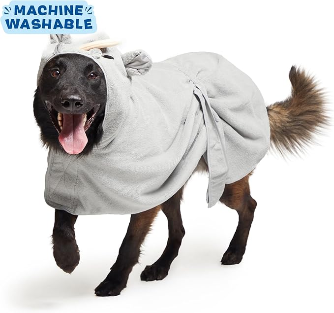 Barkbox Dog Bathrobe Fast Drying with Hook and Loop Closure & Wrap Tie Snuggle, Cute Dogs Clothes, Easy to Clean, Machine Washable, Dog Coats and Tumble Dry Low - Rhino, Large