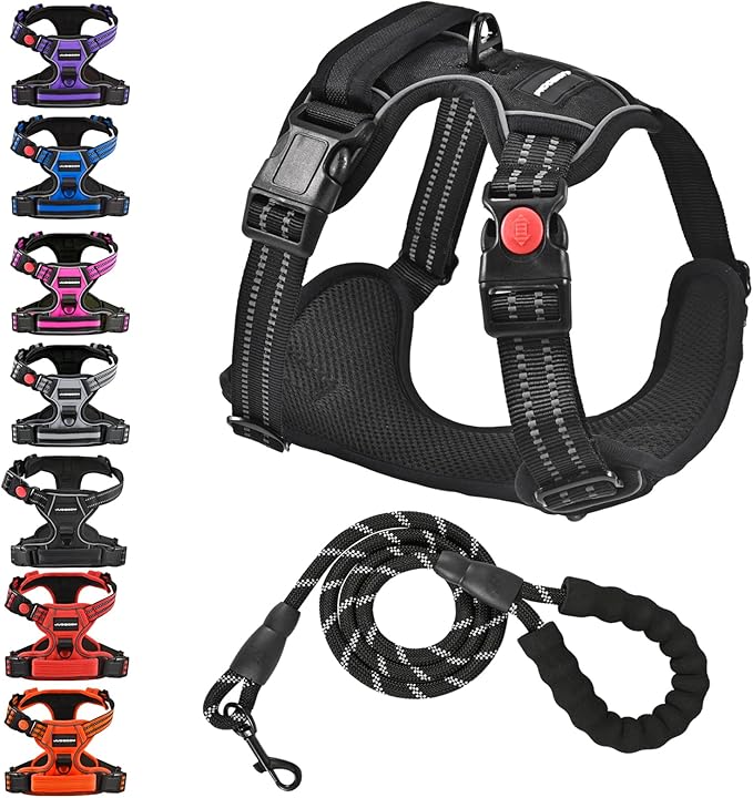 - 【No Pull, No Choke】 - Our non-pulling dog harness is specially designed with 2 metal leash rings for safer dog walks. Use the chest attachment clip to stop your dog from pulling on walks, perfect for dog training or dogs who tend to pull. The back one is great for casual walks, jogging, hiking, etc