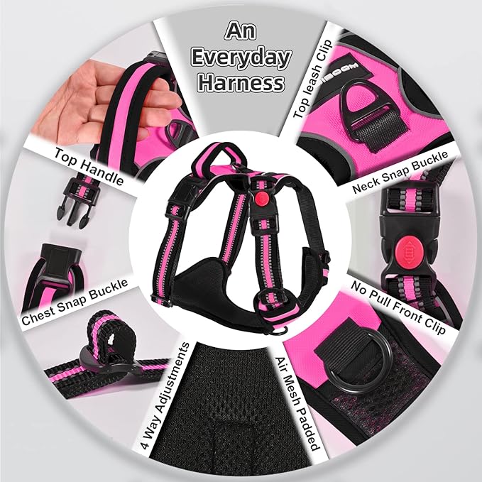 No Pull Dog Harness with A Free Heavy Duty 5ft Dog Leash, Adjustable Soft Padded Dog Vest, Reflective No-Choke Pet Oxford Vest with Easy Control Handle and Dog Leash for Dogs(Pink, Small)
