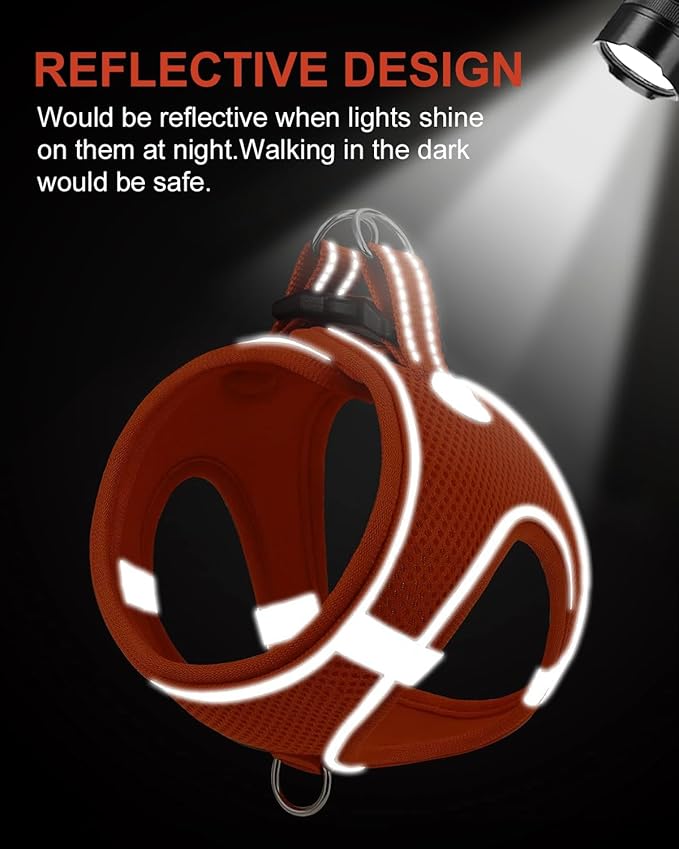 Joytale Small Dog Harness, Breathable Mesh Step-in Vest, Reflective Soft Padded Harnesses for Small and Medium Dogs, Orange, M