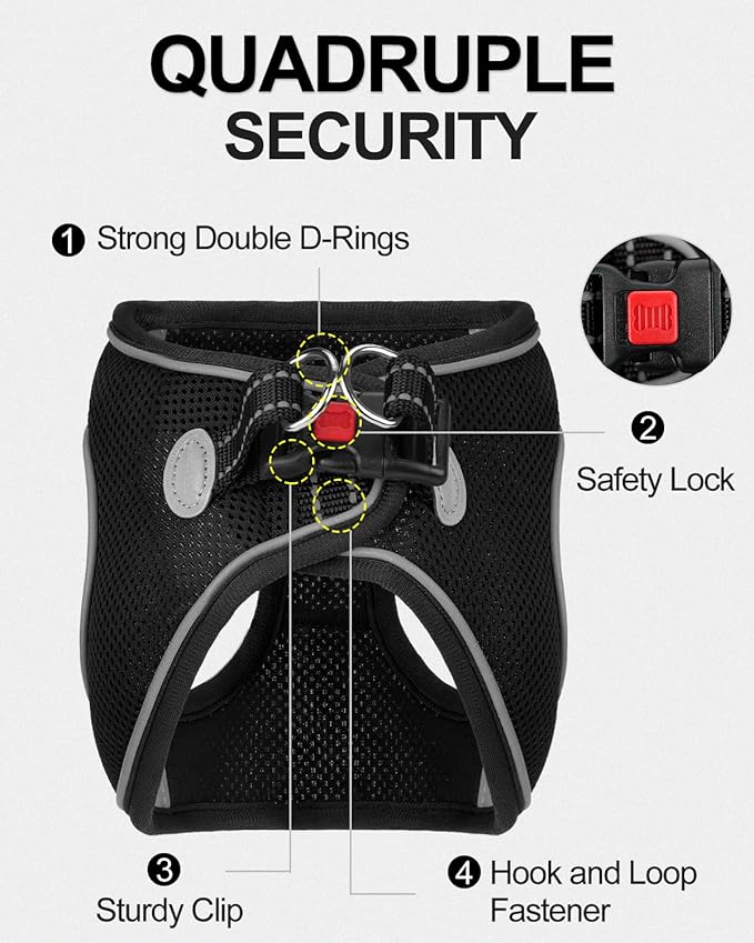 - Reflective Design: This dog harness features 360° highly reflective strips and 4 reflective wide bands for visibility in the dark. Includes a quick-release buckle for added safety