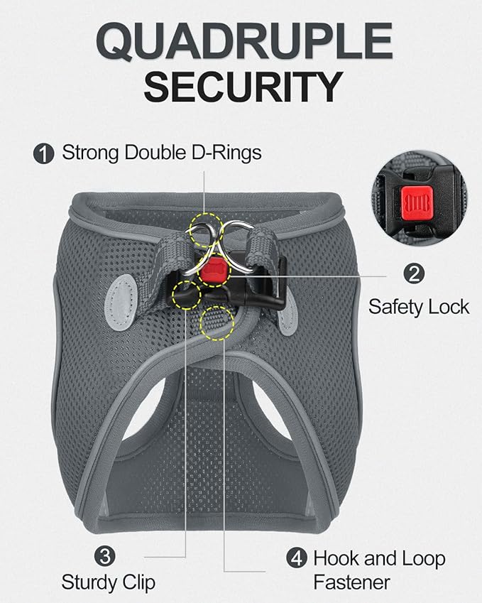 - Reflective Design: This dog harness features 360° highly reflective strips and 4 reflective wide bands for visibility in the dark. Includes a quick-release buckle for added safety