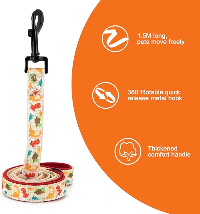 Adjustable Dog Harness and Leash Set for Girl Air Mesh Dog Vest Harness 5Ft Dog Training Leash with Soft Handle Pet Escape Proof for Small Medium Large Dogs (Dinosaur, M)