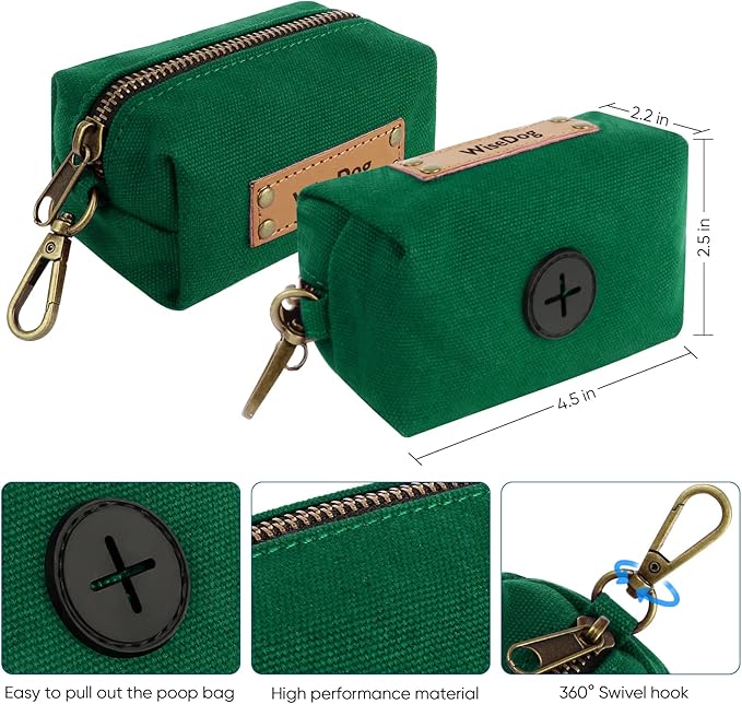 Wisedog Dog Collar and Leash Set Combo: Adjustable Durable Pet Collars with Dog Leashes for Small Medium Large Dogs, Includes One Bonus of Poop Bag Holder (L, Deep Green)
