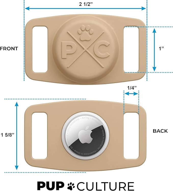 - WITHSTANDS THE RUFF TIMES. Pup Culture’s durable silicone, water and impact resistant technology makes our Air Tag holders ideal for diggers, swimmers, and playful pups. Your pooch is free to roll over to his heart’s content while the dog tracker tag stays safely enclosed inside. Sporting a durable soft material, this casing shields your AirTag from scratching, biting, and licking