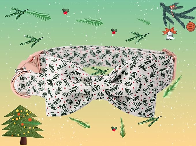 Elegant little tail Christmas Dog Collar, Pet Collar Soft with Comfy Bowtie Dog Collar Holiday Adjustable Pet Gift Collars for Small Medium Large Dogs