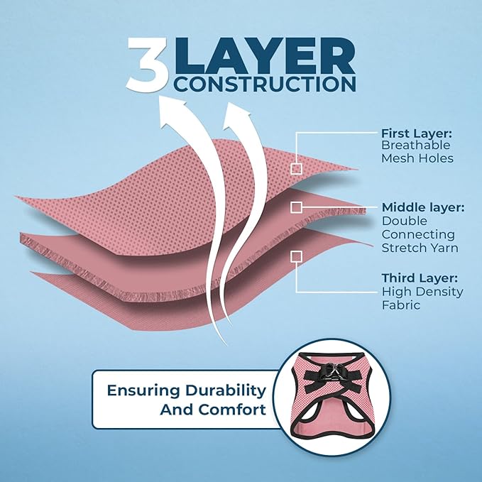 - ALL WEATHER MESH: Made with a soft, breathable air mesh, this lightweight pet harness is perfect for walks all year round.