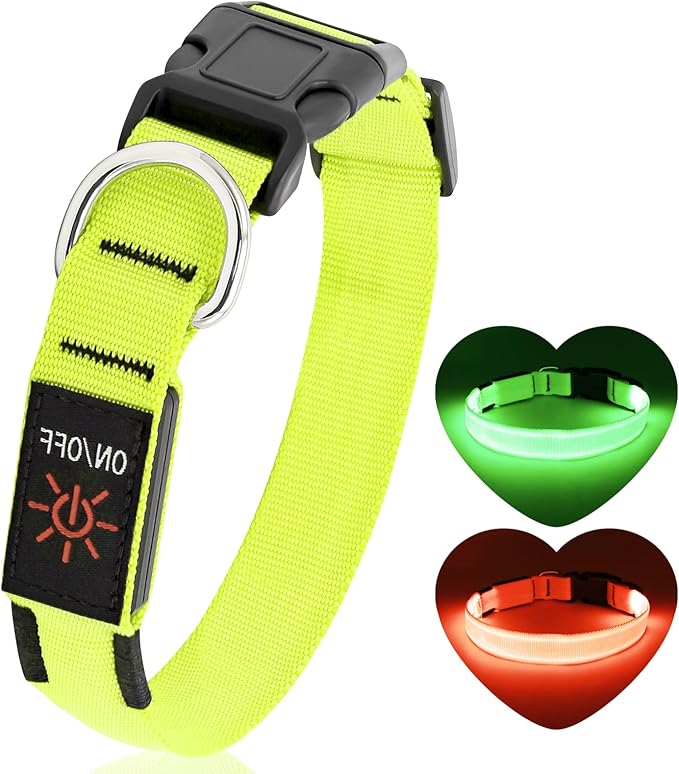 Led Dog Collar - Adjustable, Rechargeable, Waterproof, Glows in Dark for Medium Large Dogs