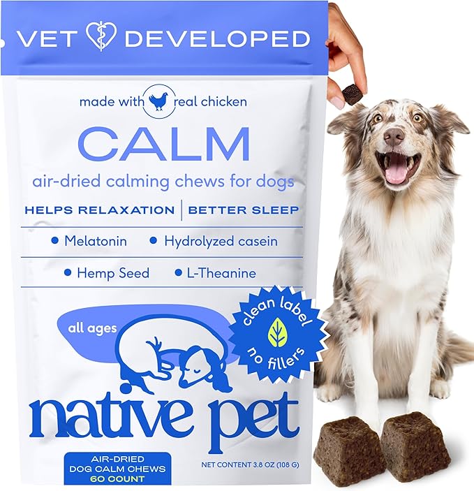 Native Pet Calming Chews for Dogs - Melatonin for Dogs Anxiety Relief - Grain Free All Natural Hemp Calming Treats & L-Theanine Helps Manage Stress & Separation Anxiety - Puppy Sleep Aid - 60 Chews