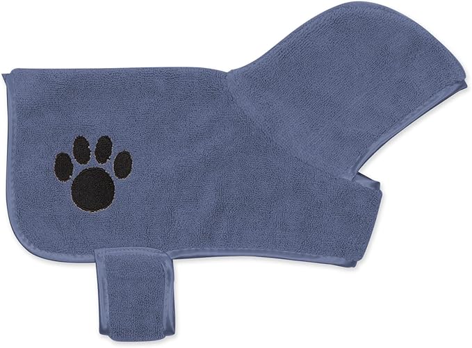 Bone Dry Pet Robe Collection, Embroidered Absorbent Microfiber Bath Robe with Adjustable Closure, for Dogs & Cats, X-Small, Stonewash Blue