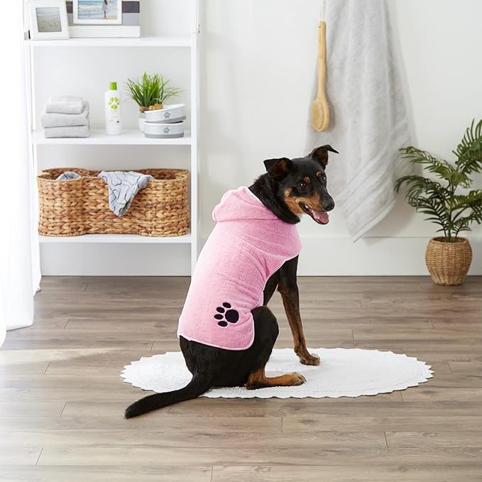 Bone Dry Pet Robe Collection, Embroidered Absorbent Microfiber Bath Robe with Adjustable Closure, for Dogs & Cats, Medium, Pink