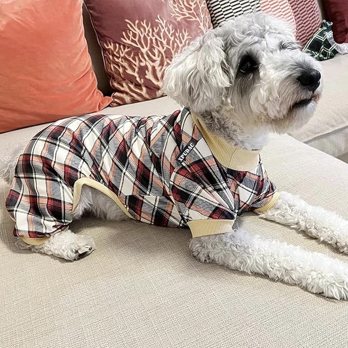 XPUDAC 4 Pack Dog Pajamas for Small Dogs Cats Plaid Doggie Clothes Puppy Onesies Christmas Pajamas Jumpsuits Pet Pjs Shirt Apparel Large, Red Green Beige Grey