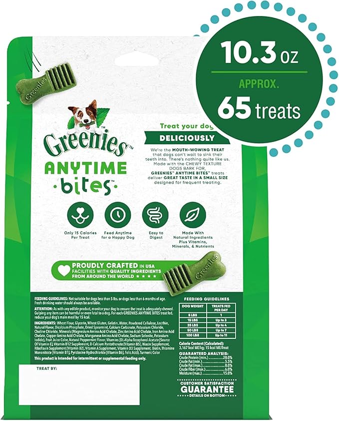 Greenies Anytime Bites Dog Treats, Mint Flavor, 10.3 oz. Bag