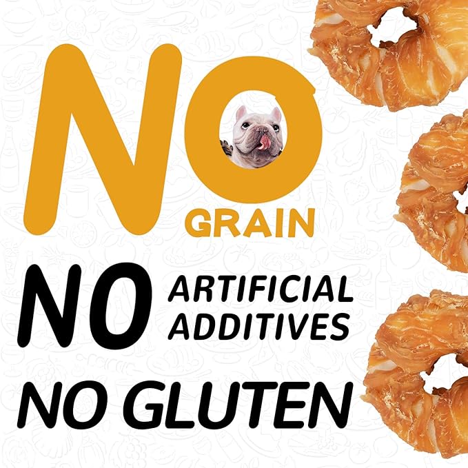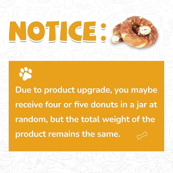 - Upgraded Formula: The newly designed chicken-wrapped rawhide doughnuts reduce the burden on the stomach and intestines, much more friendly than the previous formula